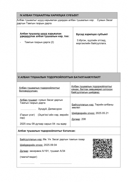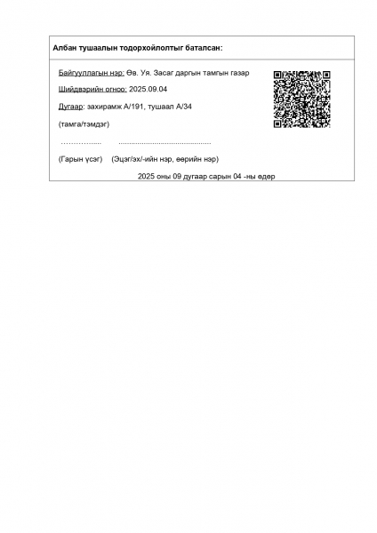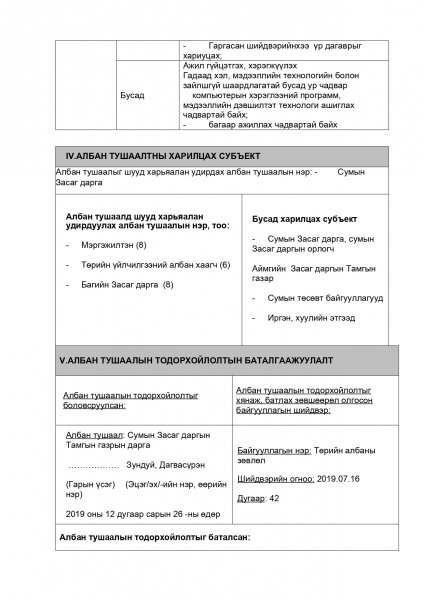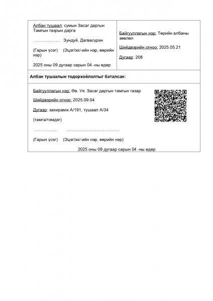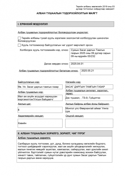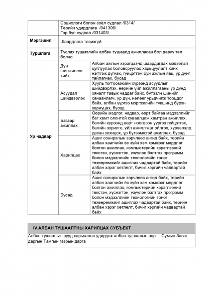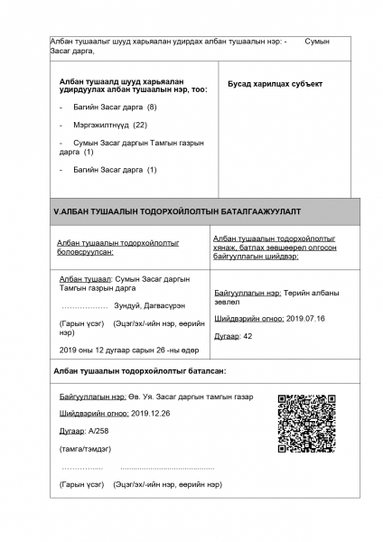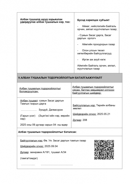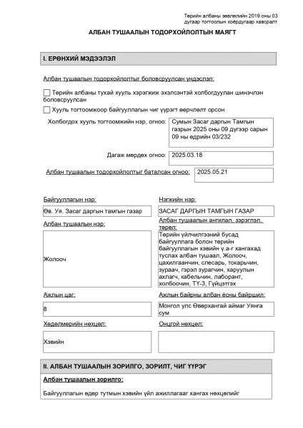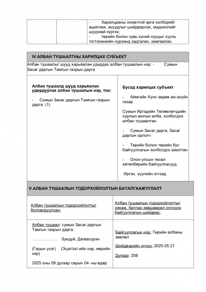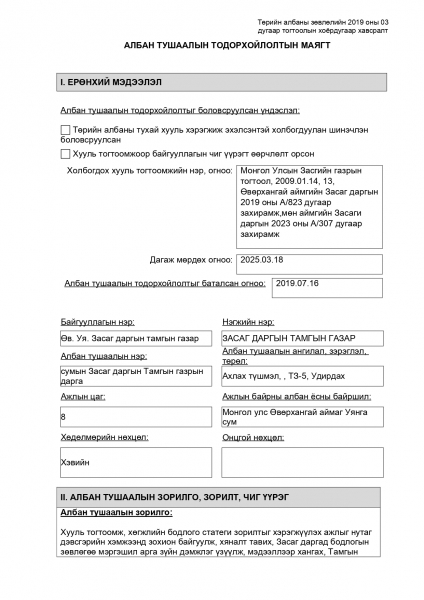 ЗАСАГ ДАРГЫН ТАМГЫН ГАЗРЫН АЖИЛЧДЫН УТАСНЫ ЖАГСААЛТ