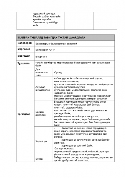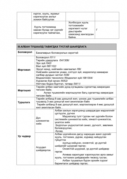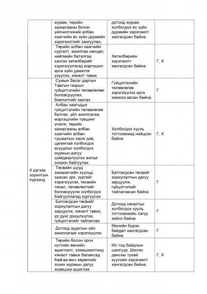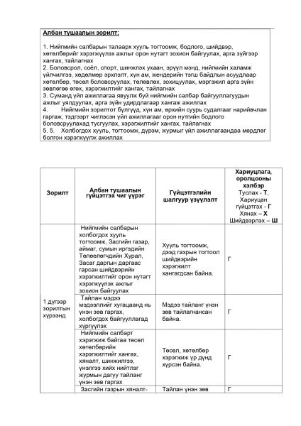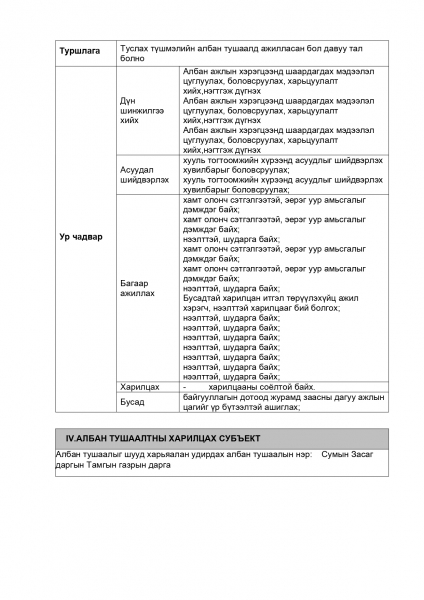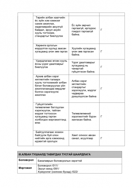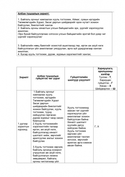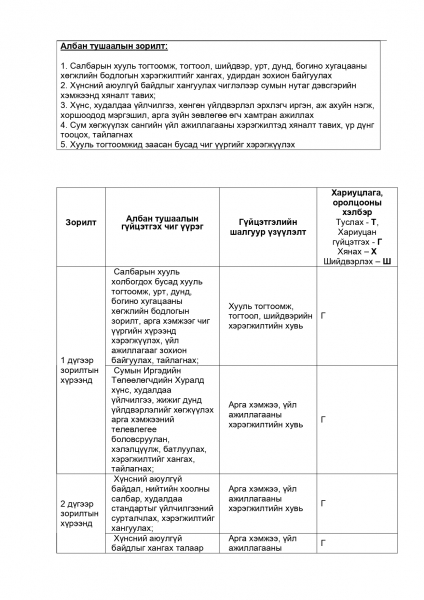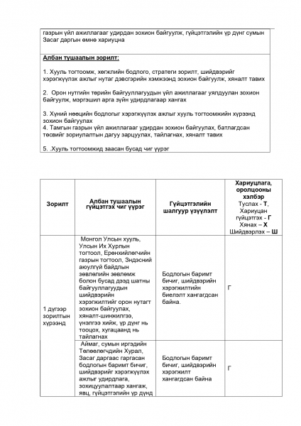 Төрийн жинхэнэ албан хаагчийн гүйцэтгэлийн төлөвлөгөө боловсруулж батлах, ажлын гүйцэтгэл, үр дүн, мэргэшлийн түвшинг үнэлэх журам