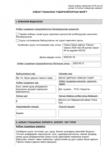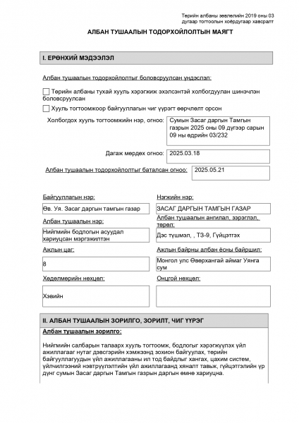 Сумын Засаг даргын 2024-2028 оны үйл ажиллагааны хөтөлбөр