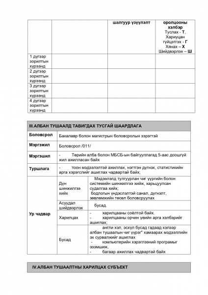 Үйлчилгээ авахад шаардагдах бичиг баримтын жагсаалт