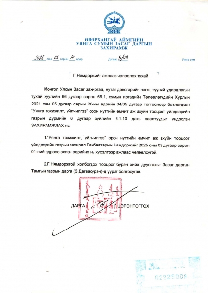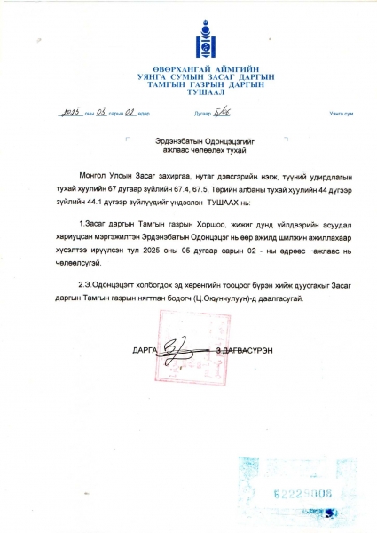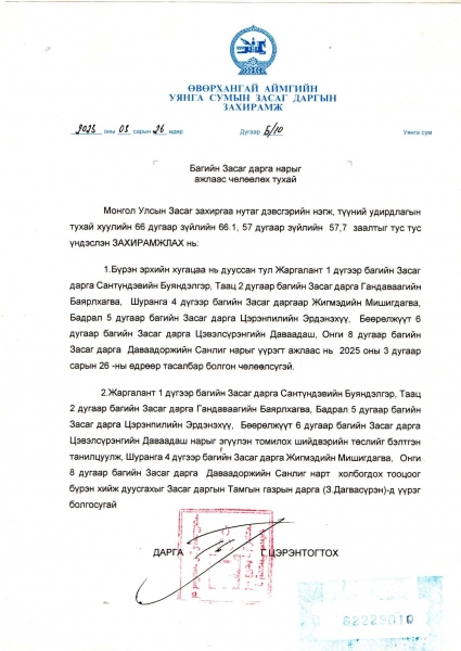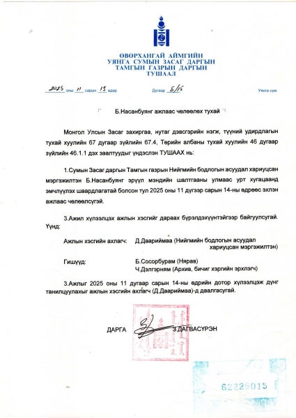 УЯНГА СУМЫН ЗАСАГ ДАРГЫН ТАМГЫН ГАЗАР